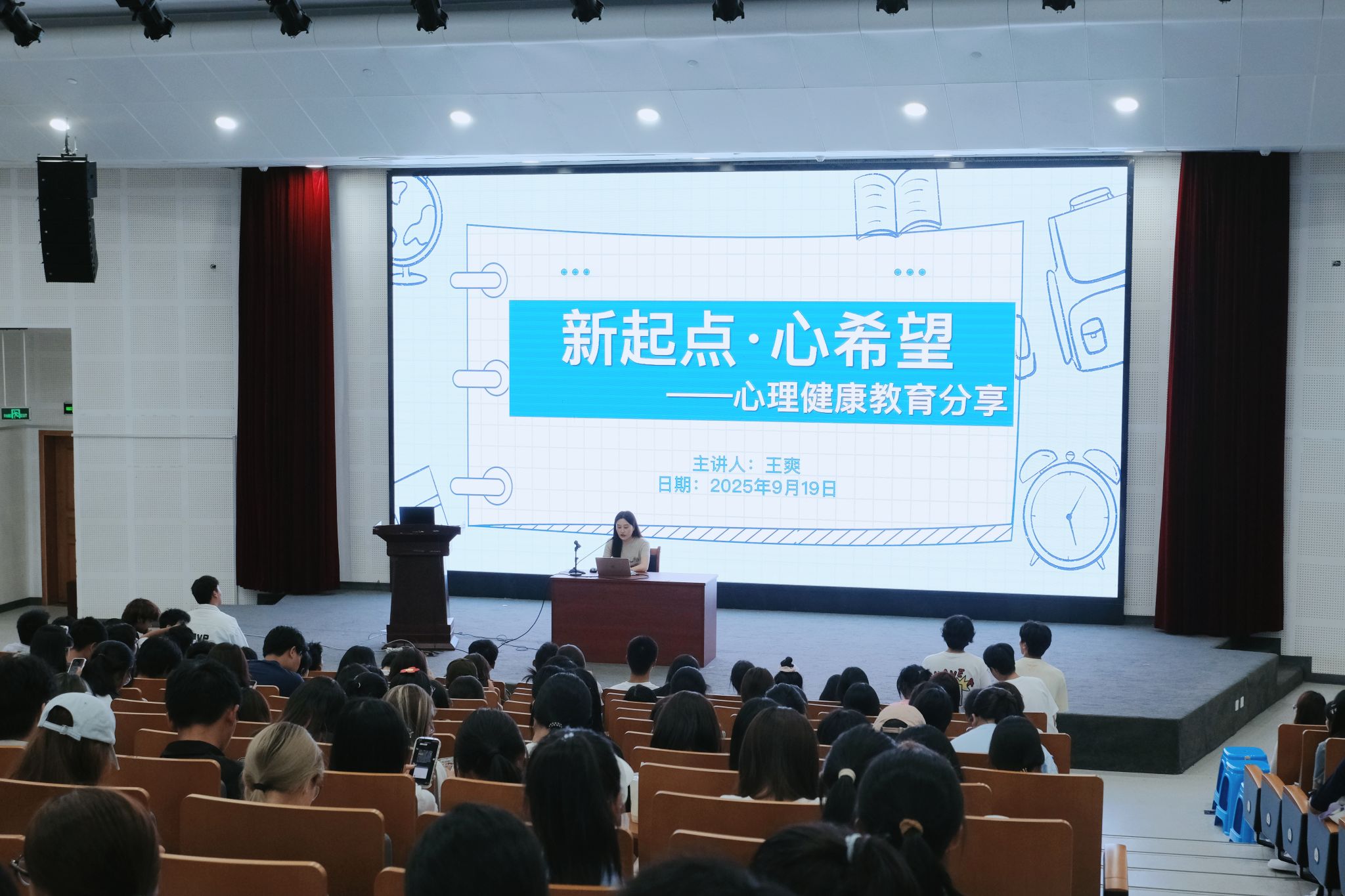 为助力环境适应,培养调适能力,筑牢心理根基。海角社区 王爽老师,以 “新起点,心希望” 为主题,结合新生入学后可能面临的学业压力、宿舍关系、生活适应等实际问题,用身边案例拆解情绪识别方法,分享 “三步调节法” 等实用技巧,引导新生树立正确的心理健康教育观念。