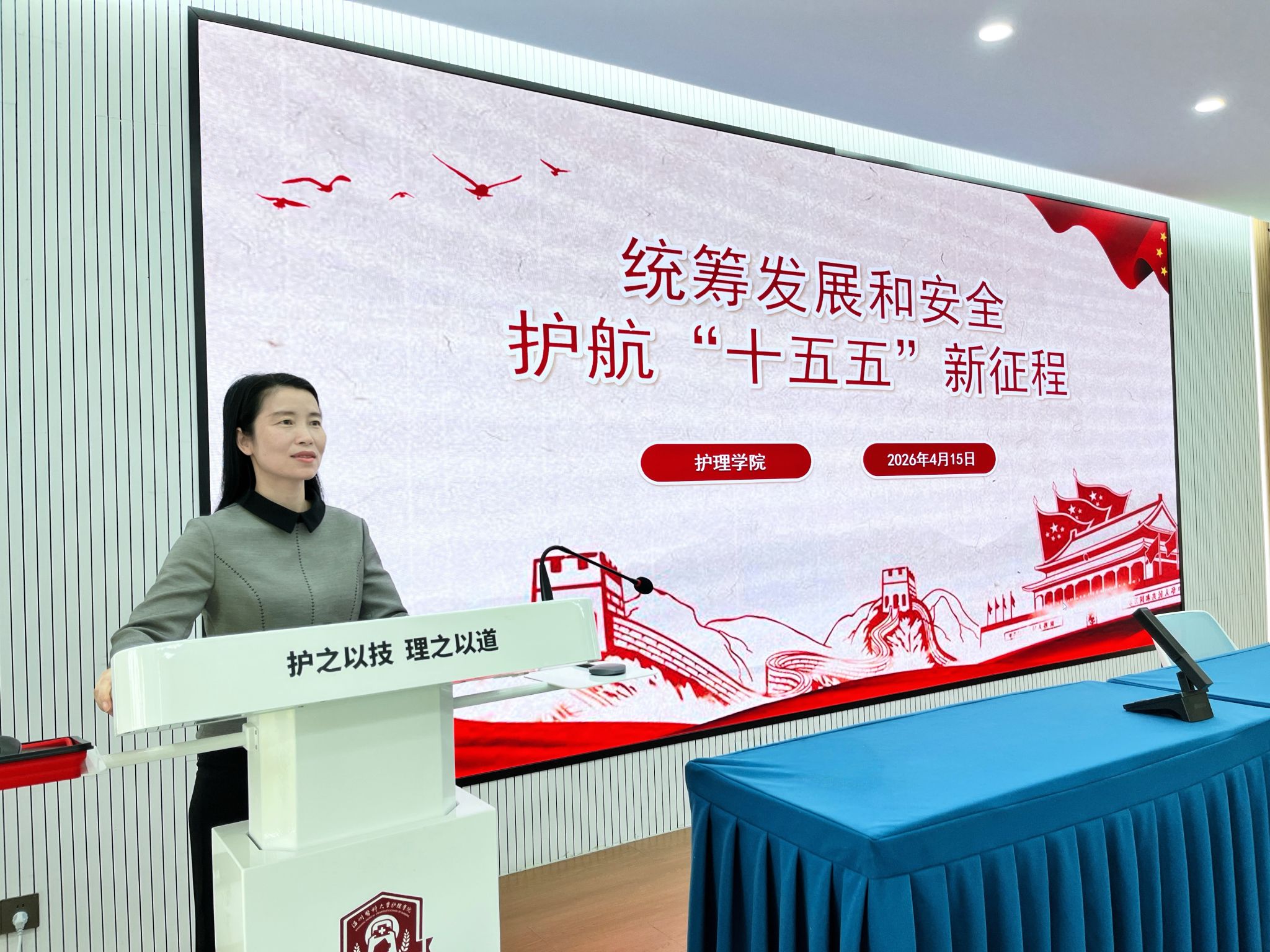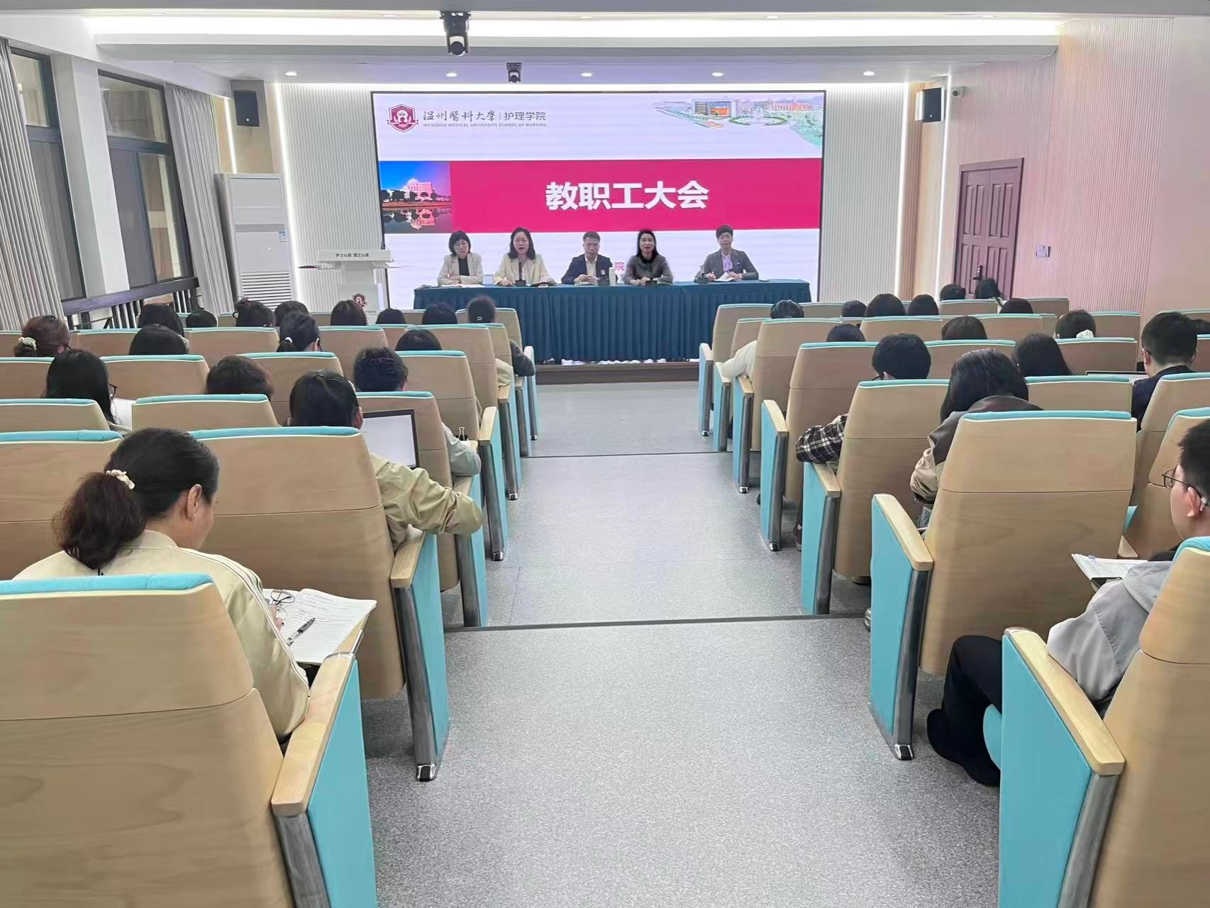 院长蔡福满在总结讲话中首先肯定了近期学院的各项工作成效,并指出,近日教育部、国家发改委等五部门联合印发的《“人工智能+教育”行动计划》为智能时代教育变革提供了根本遵循。他强调,人工智能是时代大势,也是发展机遇,更是责任使命。全院要以“人工智能+护理”为主线,推动六大核心工作目标落地见效:一是坚持党建引领,把牢智能时代办学育人正确方向。强化党对AI教育工作的全面领导,将学术诚信、数据安全、伦理底线贯穿师生使用人工智能全过程,确保人工智能向善而行、服务立德树人根本。二是创新学生管理,构建AI赋能精准思政与成长服务体系。依托人工智能开展精准画像、风险预警、学业监测,建设智能思政平台,推动学风监测、就业推荐、成长规划个性化、精准化,助力学生全面发展。三是深化教育教学,打造“人工智能+护理”育人新模式。重构本硕博AI课程体系,出版智慧化系列教材,升级智慧实验室与虚拟仿真教学场景,分层分类提升教师AI教学能力,建强智能示范课程与创新团队。四是强化科学研究,抢占智能护理科研范式变革新高地。聚焦护理大数据、智能评估、智慧康养、慢病管理等主攻方向,搭建医工交叉平台与AI护理实验室,刚柔并济引育交叉人才,以范式变革支撑高水平成果产出。五是拓展社会服务,构建智能普惠护理服务新生态。打造智慧康养、居家监测、智能随访一体化服务模式,赋能基层护理培训与质量管控,开发AI健康科普与照护助手产品,牵头制定行业标准,提升服务健康中国能力。六是扩大国际合作,提升智能护理开放办学与全球影响力。搭建国际合作平台,共建联合实验室与课程,推动师生赴海外访学研修,引进国际智能护理先进资源与标准,在深化国际交流合作中不断提升学院办学水平与影响力。