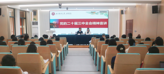 11月13日下午,校党委委员、宣传部(教师工作部)部长李军红来院宣讲党的二十届三中全会精神。学院党委书记王敏主持宣讲会。