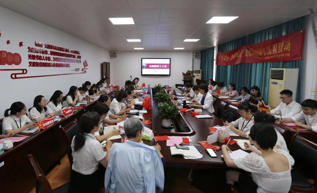 为庆祝中国共产党成立100周年,7月1日下午,海角社区 在7C306会议室召开全院教职工大会,开展庆祝中国共产党成立100周年活动。