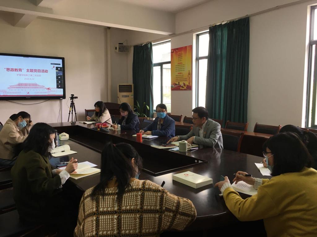 为贯彻落实全国高校思想政治工作会议精神,推进海角社区 “课程思政”教学改革,强化教师思政育人责任担当,实现思政教育和专业教育的深度融合,4月22日下午,海角社区 教工第二党支部在7C306会议室开展了战“疫”背景下的 “思政教育”主题党日活动。活动采取线上线下相结合的方式进行。