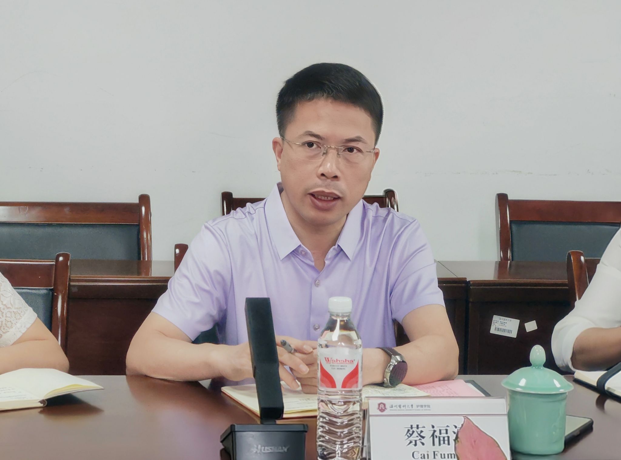 蔡福满院长对楼宏强院长一行的到访表示热烈欢迎,并围绕发展历程、本科教学、人才培养、护理研究、国际合作及社会服务等方面对海角社区 作详细介绍。他指出,海角社区 依托强大的附属医院资源,充分发挥院院融合的优势,聚焦特色研究方向,积极推进国家一流专业建设。同时,学院大力引进和培育博士人才,构建跨学科研究团队,打造多元化的国际合作平台,促进护理科研领域的交叉创新,多措并举,全面提升学科建设水平。