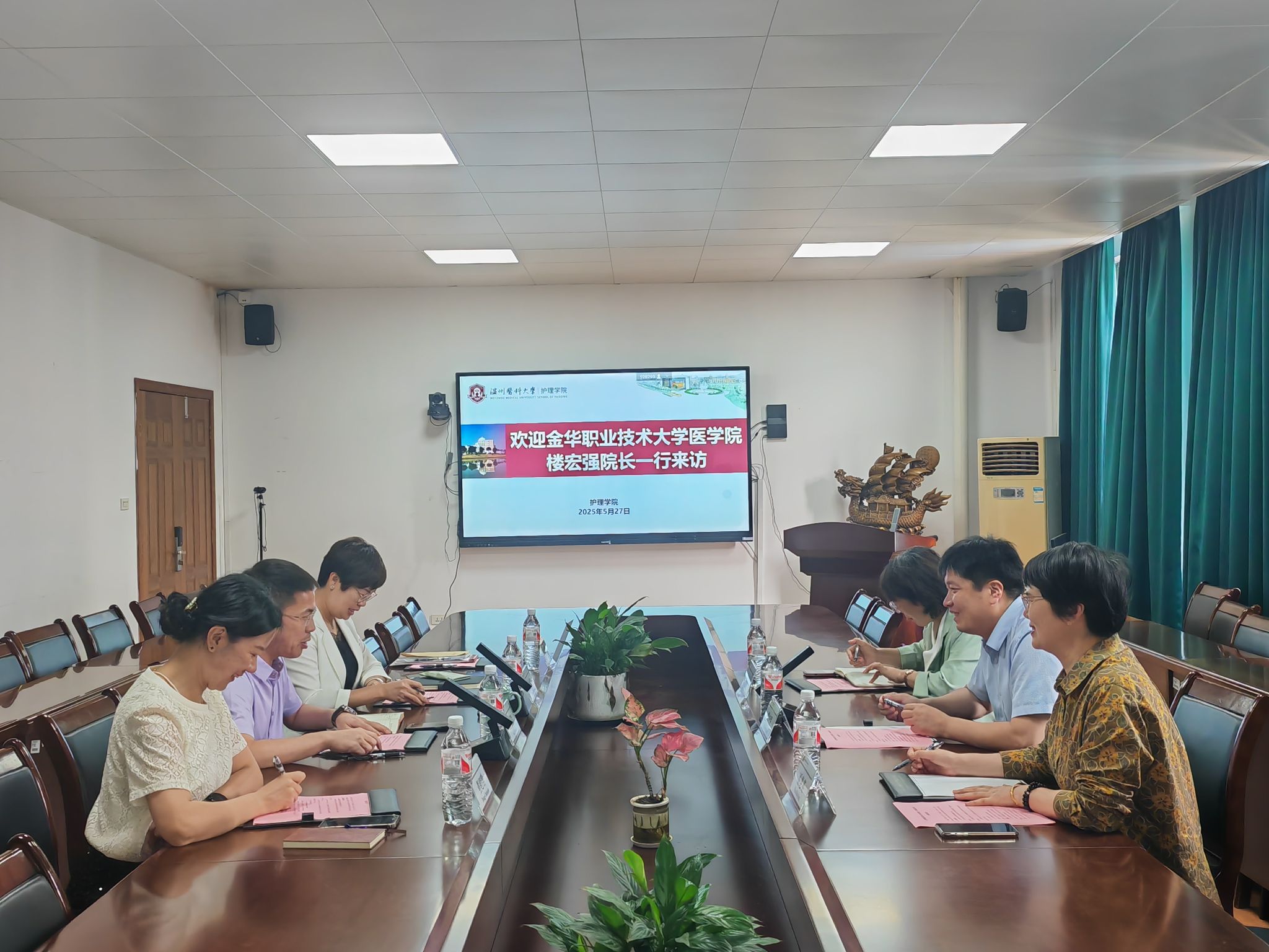 • 5月27日上午,金华职业技术大学医学院楼宏强院长一行到海角社区 访问交流。海角社区 院长蔡福满、副院长黄小琼、副院长董超群及教学办参加会议。