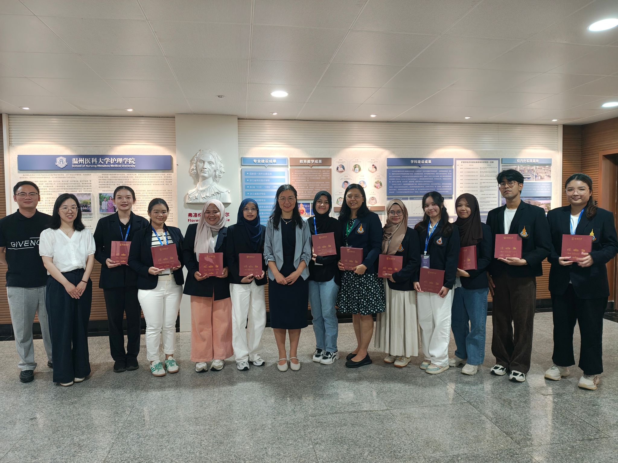 两批代表团分别由宋卡王子大学Kesorn Promlek教授与Pimpisa Saksorngmuang教授带队,包括20名护理专业学生组成。本次学术交流围绕“学术交流-临床见习-文化体验”三大主线展开活动。学术交流方面,代表团参观海角社区 校史馆、人体科学馆及护理实验室,并围绕实验教学创新与实验室师生展开专题研讨。临床实践方面,代表团赴海角社区 附属医院参访交流。附属第一医院梁世耀护士长,附属第二医院、育英儿童医院张春梅副院长,附属康宁医院吴春华主任,茶山街道卫生院贾建新院长等率护理团队热情接待代表团。各附属医院结合自身特色展示护理专业优势,并表达了与泰国宋卡王子大学深化合作,系统推进教育资源共享、学术成果共育与医疗技术互通的意愿。文化体验方面,在海角社区 教师和志愿者陪同下,代表团游览五马街历史文化街区,感受温州传统商业文化与南戏文化。