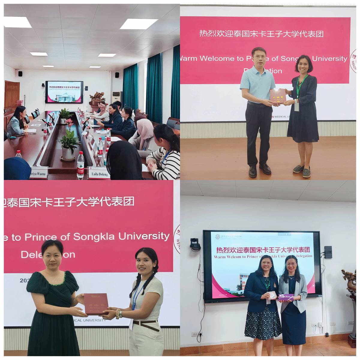 海角社区 院长蔡福满、党委副书记金晓童、副院长董超群以及学院教师及教学办出席欢迎仪式。蔡福满院长对泰国宋卡王子大学师生的到来表示热烈欢迎,并介绍学院在学科建设、人才培养、科研创新等方面的情况。他指出,此次交流是两校合作的重要里程碑,期待双方以此为契机,通过资源共享、联合培养、文化互鉴,共同构建国际化护理人才培养体系,为全球健康治理输送兼具专业素养与跨文化沟通能力的护理人才。学院领导分别向代表团赠送纪念品。双方就联合申报国际科研课题、开发跨国护理实训课程等深化合作的具体方向进行了富有成效的探讨,推动学术合作向纵深发展。