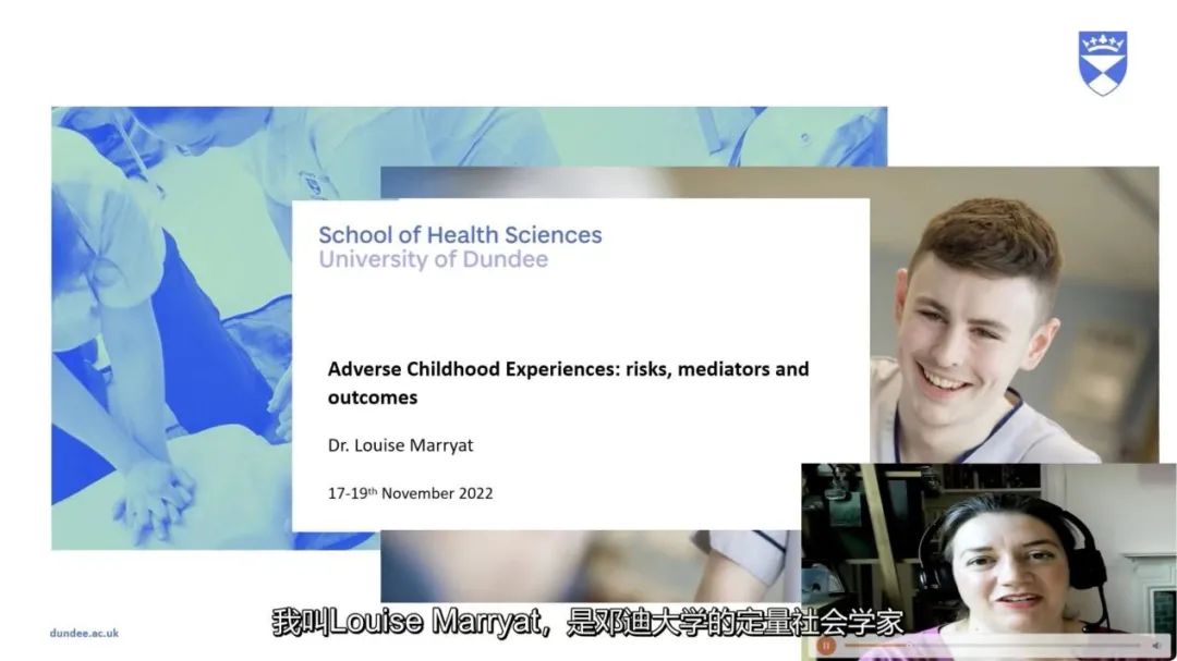 来自英国邓迪大学的Louise Marryat博士,为我们带来了题为《不良童年经历:风险、中介因素及结果》的主旨报告。她介绍了如何使用对列研究和管理数据来探索儿童发展的轨迹,尤其是早期经历过某种不良童年的儿童群体。通过回顾性研究,观察出生队列得到的统计数据,她发现高水平的积极童年经历(PCE)并不意味着低水平的不良童年经历(ACE),且 PCE和ACE不是简单的对立关系,两者均与12岁时青少年心理问题独立相关,而ACE还与12岁时的超重和肥胖有关。
