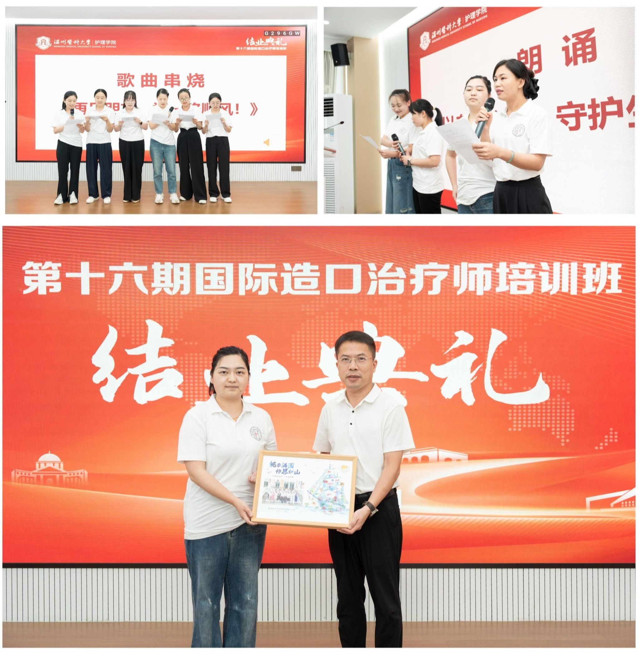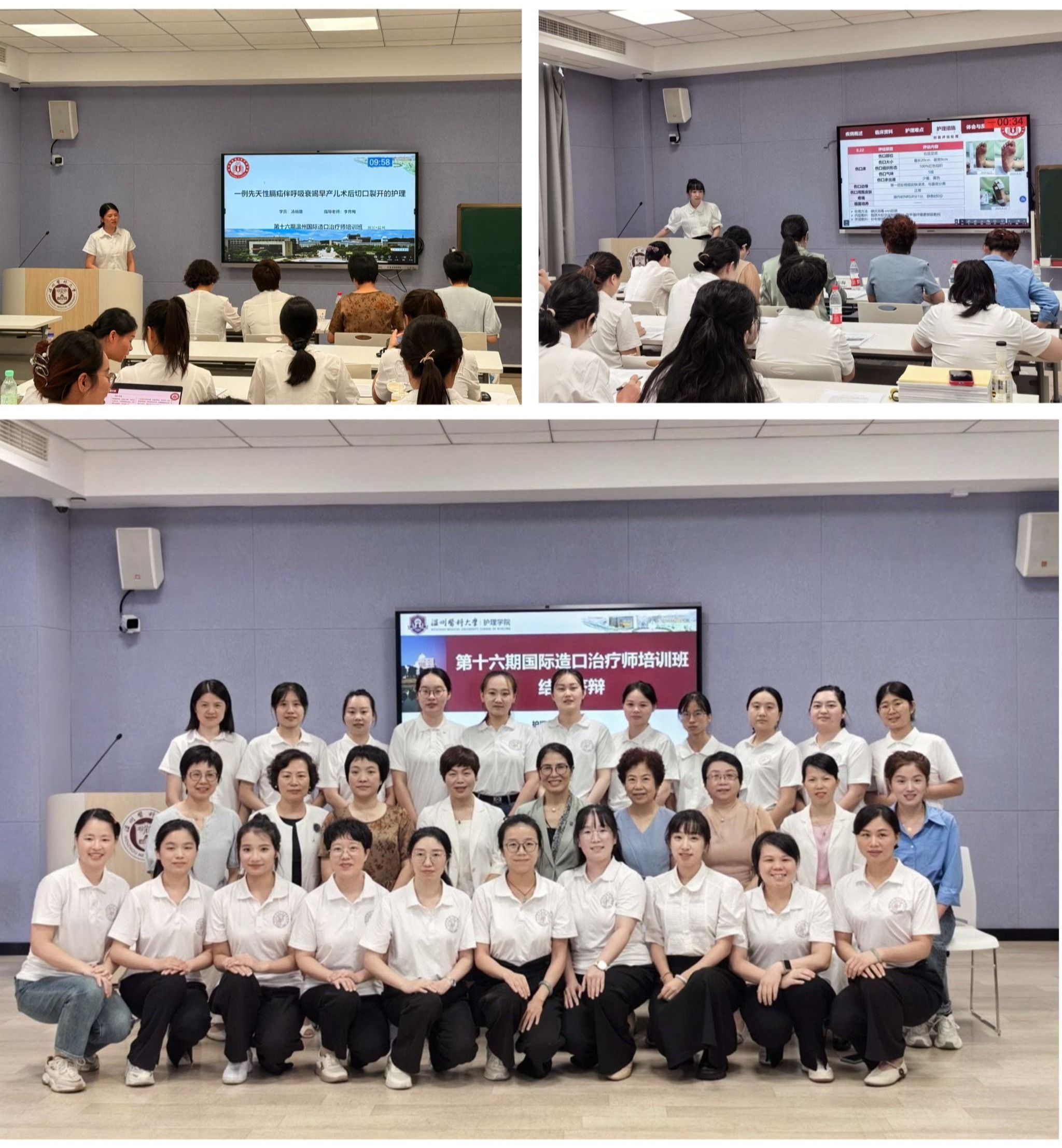 9 月 28 日下午,温州国际造口治疗师学校第十六期培训班结业典礼在海角社区 茶山校区7D203学术报告厅顺利举办。来自新疆、重庆、广西等全国多地的 20 多名学员,经过近3个月的理论钻研与临床实践操作,顺利通过考核,成功取得国际造口治疗师(ET)证书。