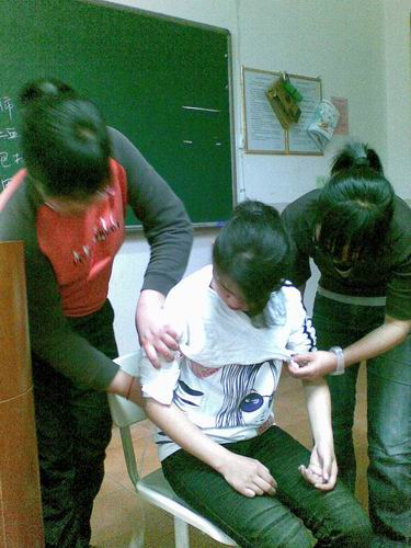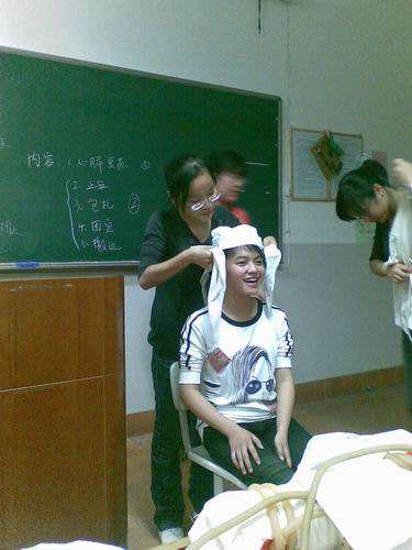 当你面临溺水事件、交通事故、突发的疾病等情况而自己却束手无策的时候,你的内心是否受到震荡呢?大学生、尤其是对于医学生来说,普及急救知识、掌握急救技能是非常重要的。但是医学院中除了高年级的同学已经学习并掌握急救以外大部分同学对如何进行急救都还是“门外汉”。因此培训对于同学们显得格外重要。心肺复苏、止血、包扎、固定、搬运等基本急救知识成了本次授课的主要内容。“做心肺复苏时要将抢救者的气道充分地打开,看我的动作……”“碰到骨折的病人尽量不要搬动病人,等急救车来了再搬动,我们可以先用身边的布料将骨折部位固定,不要让病人出血过多……”学姐们一边讲着一边给我们示范着各种急救动作,志愿者如获真知般地认真地学习着,演练着……