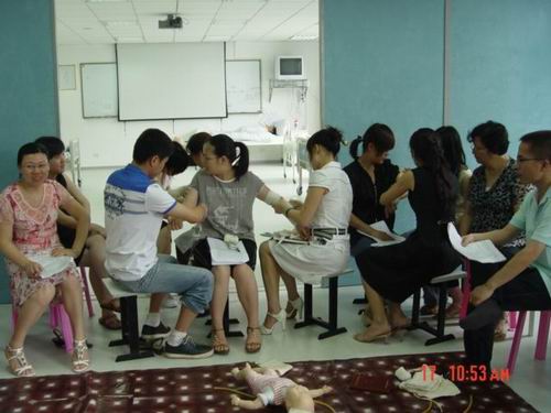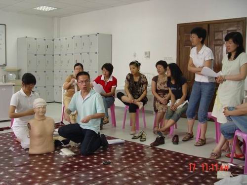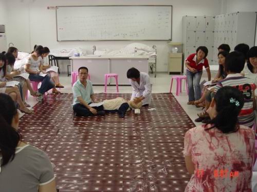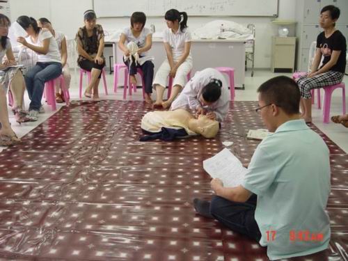 5月中旬,海角社区 蔡福满老师受浙江省红十字会委派赴北京接受全国红十字总会的救护师培训,取得救护师资格。目前,温州市卫生系统仅只有2人,蔡老师是其中之一。蔡老师返校后立即举行学院的师资培训,普及救护知识。我校拟在机动车驾驶员、电力、建筑、机场等高危行业和人群中开展救护培训,普及初级卫生救护知识和技能,提高群众的自救互救能力,减轻、减少突发事件伤残伤亡的发生率。