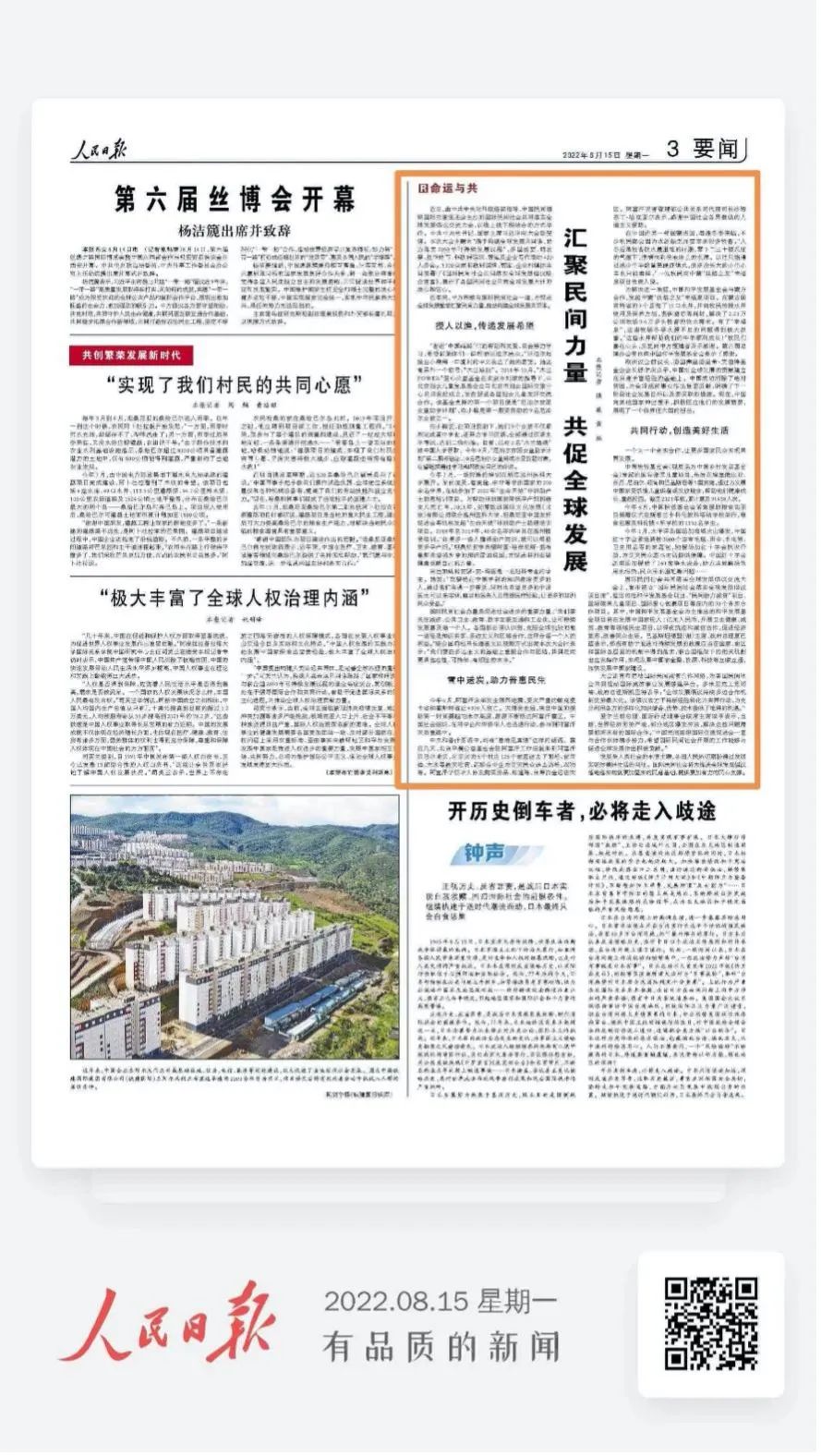 2022年8月15日,《人民日报》以《汇聚民间力量 共促全球发展》为题报道了国际民间社会共同落实全球发展倡议交流大会,回顾了近年来,中方积极与国际民间社会一道,为促进全球发展繁荣汇聚民间力量,推动构建全球发展共同体。我校“生命天使”非洲助产士助理培训项目受到关注。
