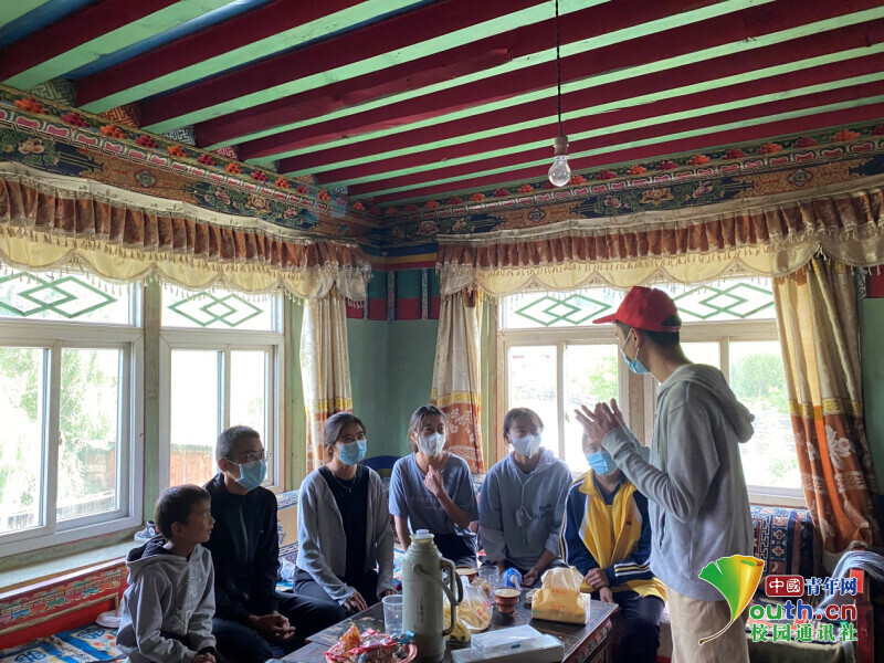 图为实践队在居民家中宣教。中国青年网通讯员 巴桑 提供